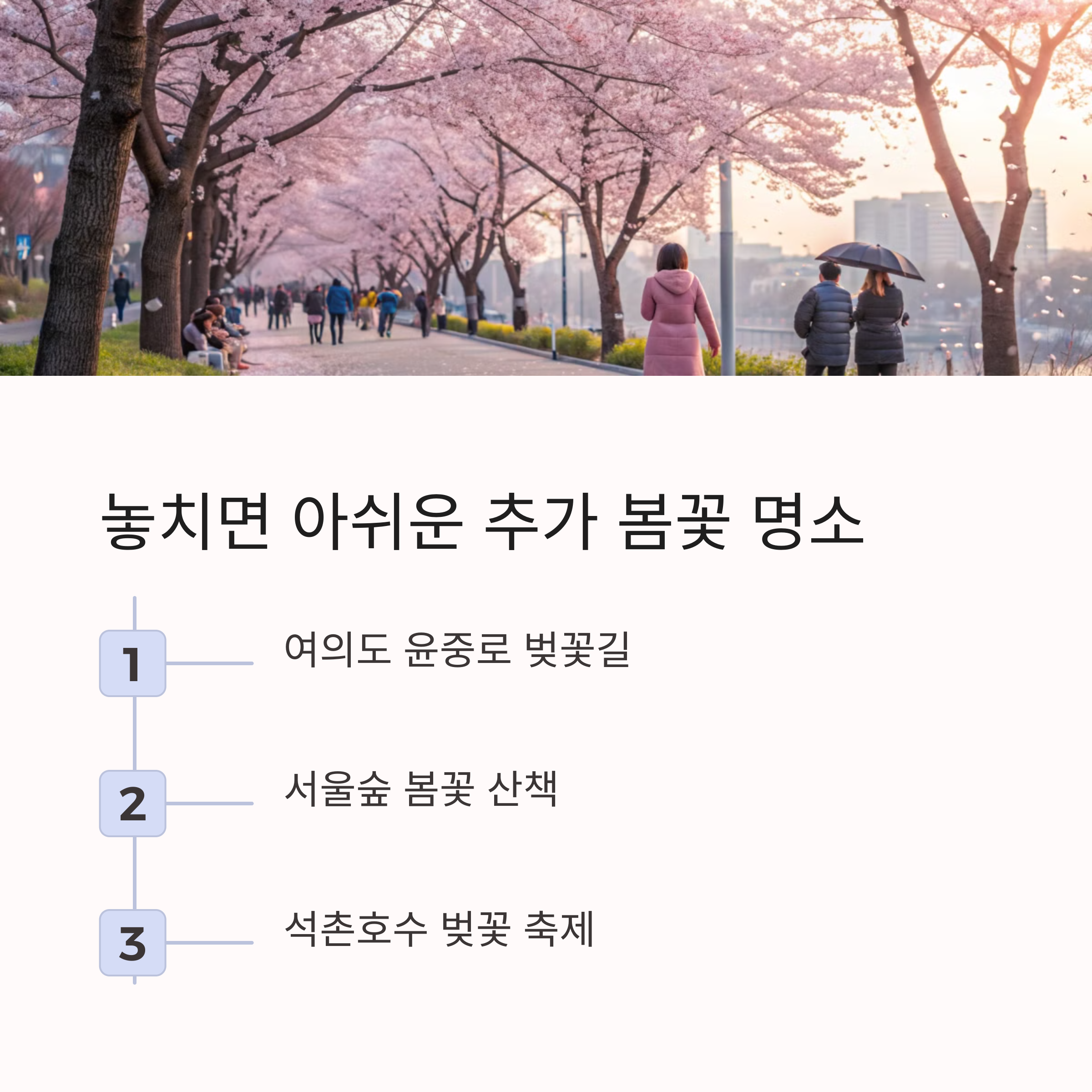봄철에는 여의도 윤중로, 서울숲, 석촌호수 등 벚꽃 명소와 감성 카페들도 함께 방문해 보세요.