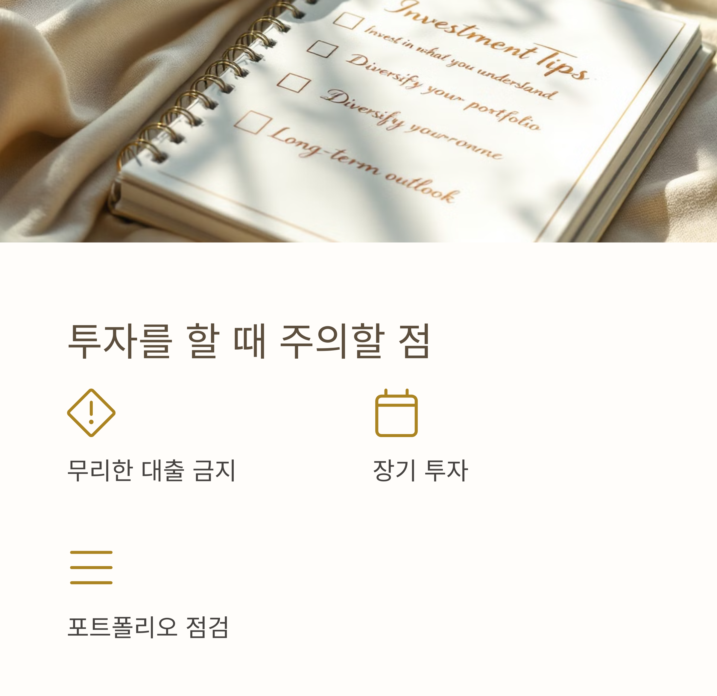 한 가지 투자 자산에 집중하는 것은 위험하므로, 다양한 자산에 분산 투자하는 것이 좋다.