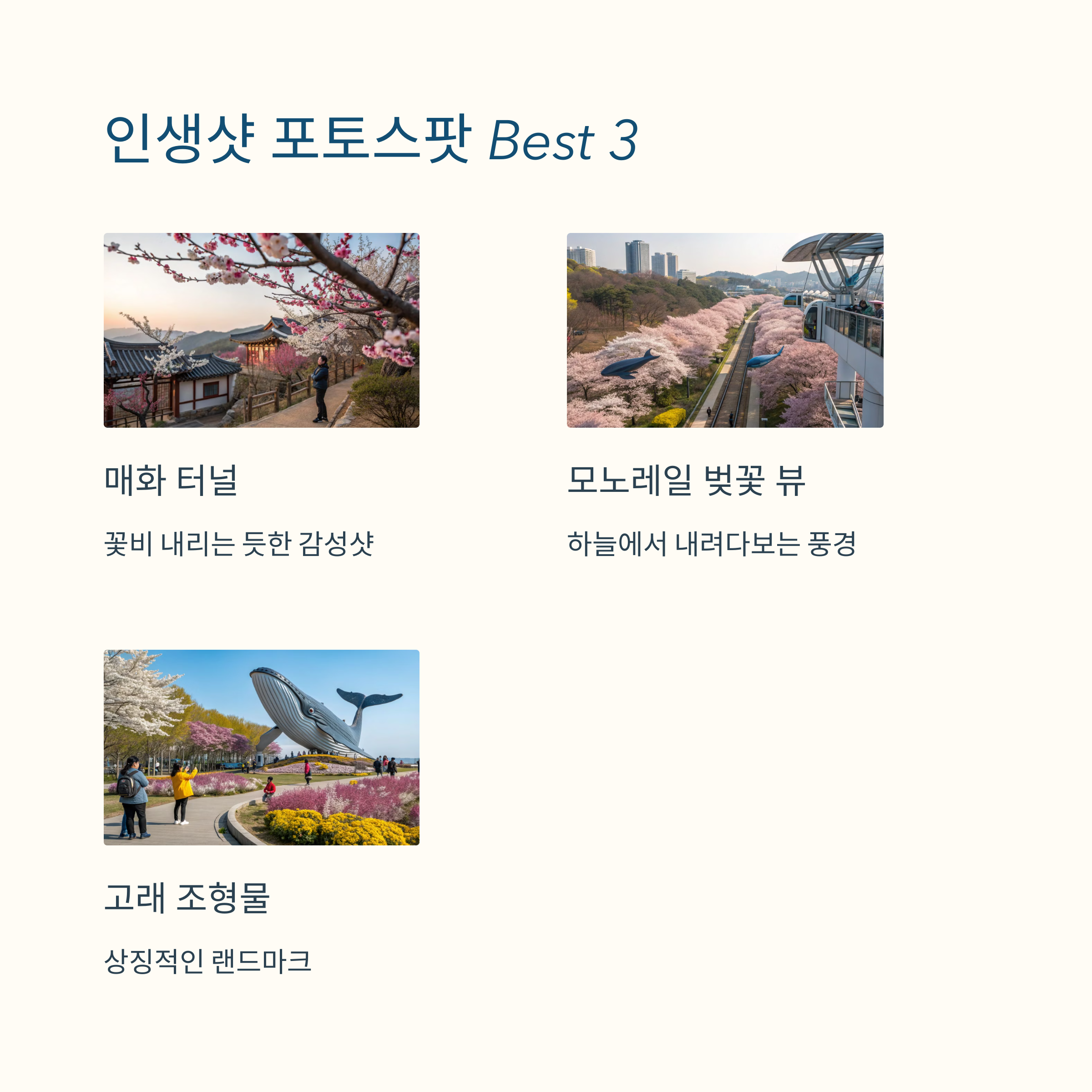 고래문화마을과 매화꽃 구경을 계획하신 분들은 이 글을 읽고 여행을 떠나세요! 여러분은 이곳에서 어떤 활동을 해보고 싶으신가요? 댓글로 의견을 남겨주세요!